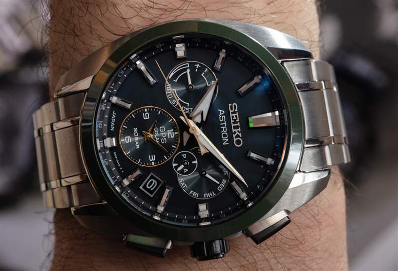 精工 5X 手表真正正確的是表盤(pán)看起來(lái)比以前更加高端。Astron GPS 手表在大多數(shù)情況下一直很清晰,但現(xiàn)在有了“Grand Seiko-like”表盤(pán),包括寬大的指針和鉆石拋光的應(yīng)用時(shí)標(biāo),這些 5X 手表的表面喚起的視覺(jué)敬畏感是更明顯。我只希望精工能找到一種方法將 AM/PM 指示子表盤(pán)設(shè)計(jì)在 7 點(diǎn)和 8 點(diǎn)之間,以便在視覺(jué)上平衡日期窗口的位置——在表盤(pán)的另一側(cè)。廣告訊息廣告信息結(jié)束