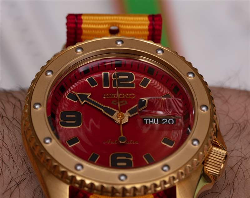 看到他們各自的限量版 Seiko 5 Street Fighter 手表時,我會立即想到 Guile、Ryu 或 Zangief 嗎?不一定,但粉絲們可能仍然會印象深刻。這些手表中最好的一款非常適合佩戴在不需要知道您正在提醒您手腕上的視頻游戲的人周圍。在這方面,Seiko 5 Street Fighter Ken(參考 SRPF20K1)和 Zangief(SRPF24K1)等作品在外觀方面是我最喜歡的——不一定與角色匹配程度。從時尚的角度來看,我認為除了金屬手鐲好看之外,Seiko 5 運動手表在北約風格或運動織物表帶上也很帥氣。