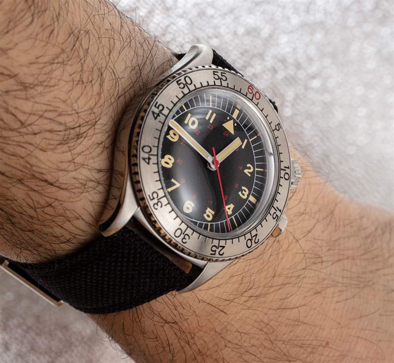 Undone Aero 通過在傳統的旋轉表圈上提供扭曲,結合了 Weems 秒設置刻度。在這里,旋轉表圈可在兩個方向上自由移動,并帶有 60 秒刻度。表圈在 2 點鐘位置有一個類似皇冠的螺絲,可用于擰緊表圈,使其不會移位。這使得表圈能夠像近 100 年前首次推出的 Weems Second Setting 系統一樣發揮作用??梢哉f,這也是 Undone 生產的第一款以航空手表為靈感的產品。