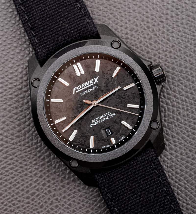 Essence 手表系列是 Swiss Formex的重要突破性產品,因為它將品牌核心 DNA 中值得注意的元素與多功能和現代運動手表體驗相結合,這種體驗足夠保守,足以吸引主流。Essence 等產品幫助 Formex 等公司(以及其他成功發(fā)布類似產品的公司)走出“微型品牌”的世界,進入精品制表商的領域,這在知名度和聲望上都有所提高。今天,我來看看 Essence 的進一步發(fā)展,它是鍛造的碳外殼 Formex Essence Leggera(參考 0330.4.6399.811)。