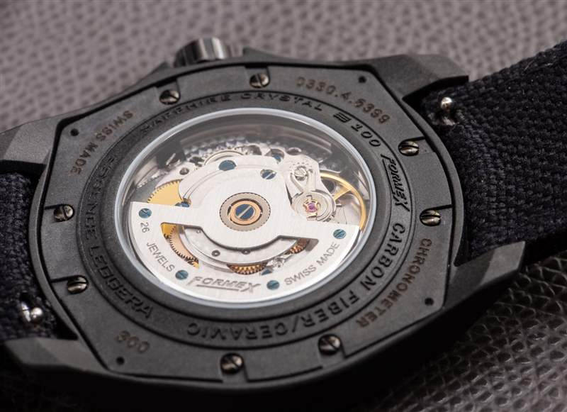 鍛造碳是一種使用碳作為精密表殼材料的方法。它由 Audemars Piguet 推廣,在最終普及之前,它被用于相當昂貴的豪華手表。愛彼在內部生產這種材料,這意味著其他使用鍛造碳的公司必須復制類似的過程才能達到自己的結果。并非所有鍛造碳纖維的外觀或感覺都相同,Formex 使用的碳纖維觸感既光滑又“柔滑”(不粗糙或不均勻)。鍛造碳首先壓縮一些碳材料,然后在高溫下烘烤。然后將產生的“鍛造碳”塊加工成表殼的形狀。