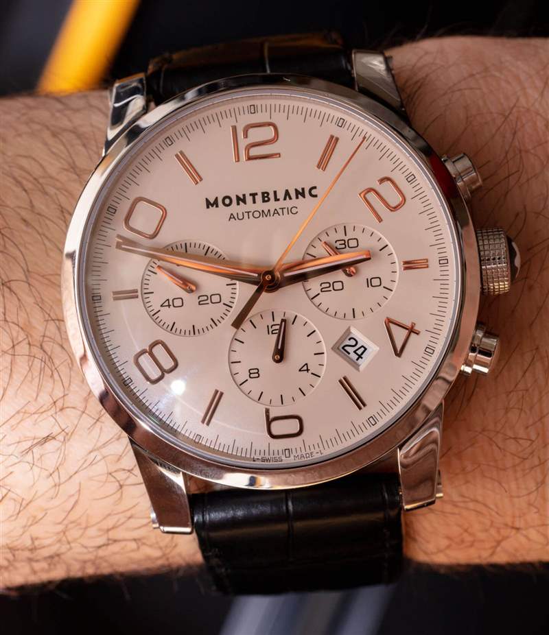 萬寶龍生產了這個特殊的時光行者計時表模型系列,有幾個表盤版本,但在這一代時光行者表殼退役之前,萬寶龍將其呈現為多種形式和不同的機芯。盡管 Timewalker 至少有三個不同的計時碼表版本,但我發現這種帶有瑞士制造 ETA Valjoux 7753 的原創計時碼表是最令人滿意的。參考 101549 有一個銀色表盤,玫瑰金色指針和時標。萬寶龍還生產了一款全銀表盤,配有一條我非常喜歡的棕色表帶。我認為黑色表盤也是可用的。萬寶龍甚至在獨特的金屬表鏈上提供了一個有趣的版本,帶有鏤空鏈節和黑色陶瓷中心鏈節。