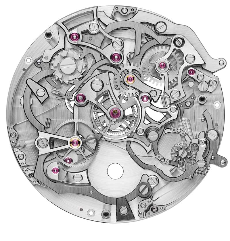 Les Cabinotiers Grand Complication Split-Seconds Chronograph “Tempo” 內(nèi)部的新機(jī)制是鐘表復(fù)雜性的分層蛋糕。江詩丹頓將此機(jī)芯稱為 2756 型機(jī)芯,它由多達(dá) 1,163 個(gè)獨(dú)立零件組成。從這個(gè)角度來看,大多數(shù)機(jī)械表的機(jī)芯部件少于 200 個(gè)。