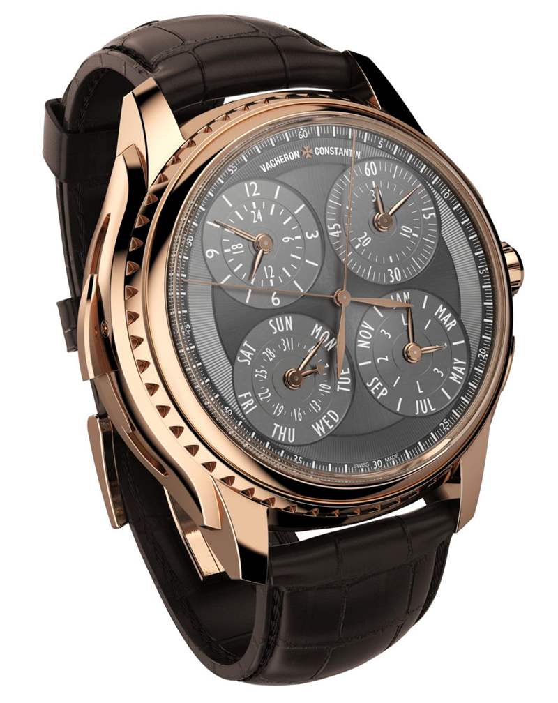 江詩丹頓將帶有四個(gè)小表盤的表面視為手表的主表盤。它的特點(diǎn)是左上子表盤上的時(shí)間,右上子表盤上的計(jì)時(shí)碼表,兩個(gè)下子表盤是為萬年歷復(fù)雜指標(biāo)保留的。主表盤用于雙追針計(jì)時(shí)秒針。我發(fā)現(xiàn)有趣的是表盤對計(jì)時(shí)碼表的可用性的關(guān)注程度——這說明了所有者的意圖。