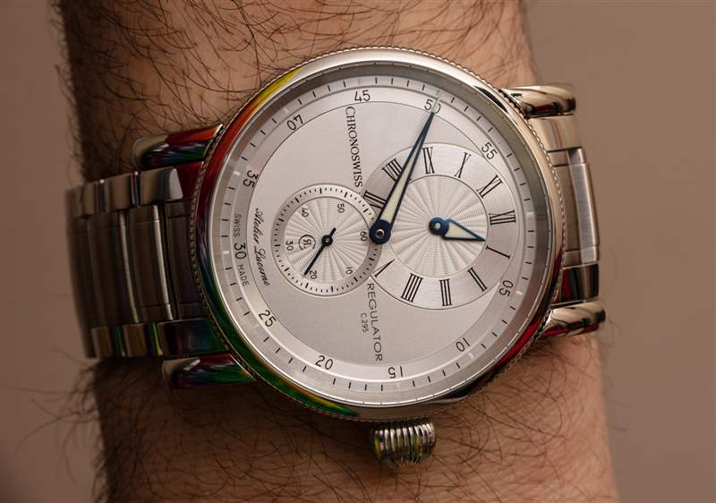 Regulator-style 手表是鐘表表面設計的一種精致,與單純的設計花哨無關。我與其他收藏家談論調節器時計的經驗是,許多人根本不知道為什么表盤上的分、秒和小時在他們自己的表盤上是分開的。這有一個傳統的原因,我稍后會回到監管機構的手表上。首先,讓我介紹一下Chronoswiss?Regulator Classic,它是 Chronoswiss 多年來生產的一系列調節器式時計之一。今天,我回顧了參考 CH-8773-SI Regulator Classic 的 41 毫米寬形式,帶有銀色表盤和相配的鋼表鏈。