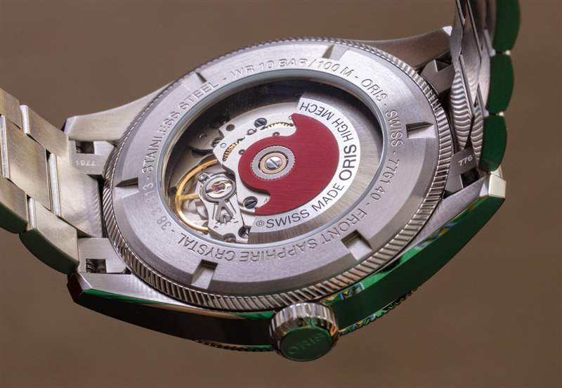 手表內(nèi)部是 Oris 所謂的 751 型自動機(jī)芯。它是瑞士制造的 Sellita SW220-1 底座,配有標(biāo)志性的紅色 Oris 自動轉(zhuǎn)子。展示底蓋提供了運(yùn)動的視圖,盡管基礎(chǔ)運(yùn)動的裝飾更精美會很好(因?yàn)樗鼤c Oris 似乎與 ProPilot Big Date 鐘表系列一起使用的更時尚的主題。機(jī)芯以 4Hz 頻率運(yùn)作,動力儲存 38 小時。