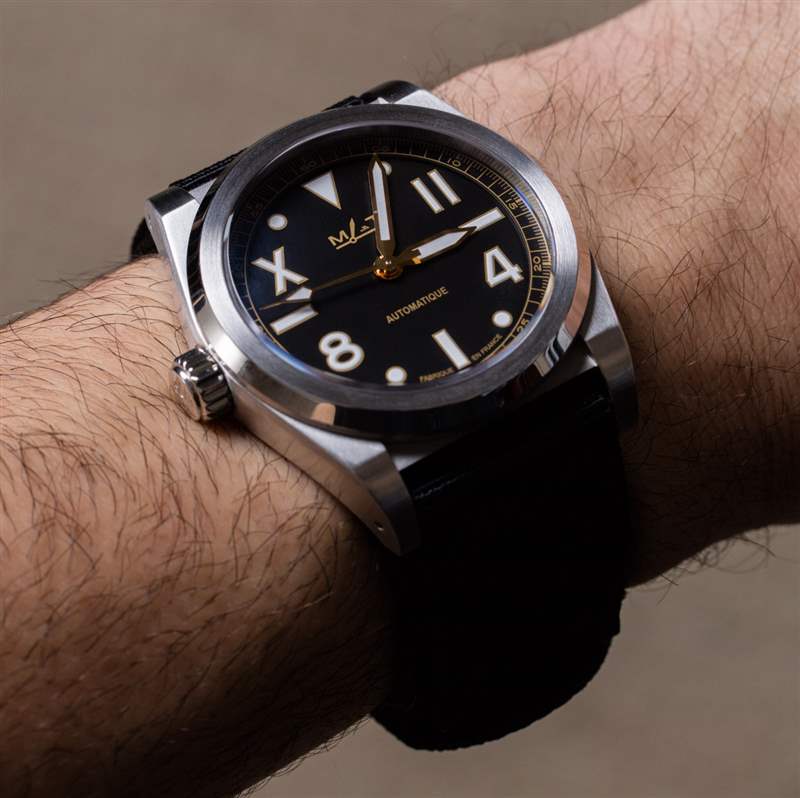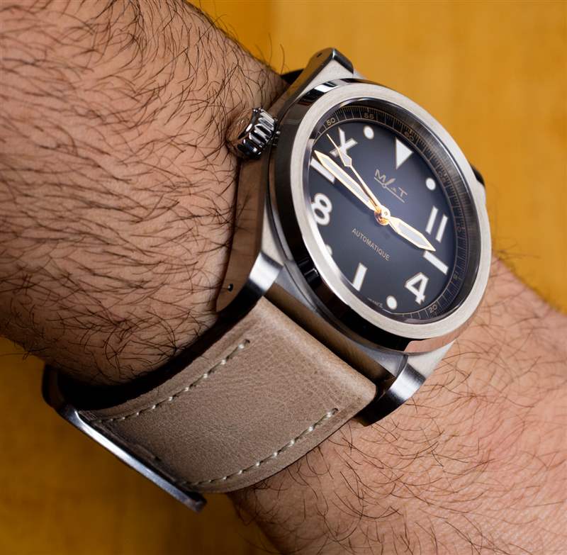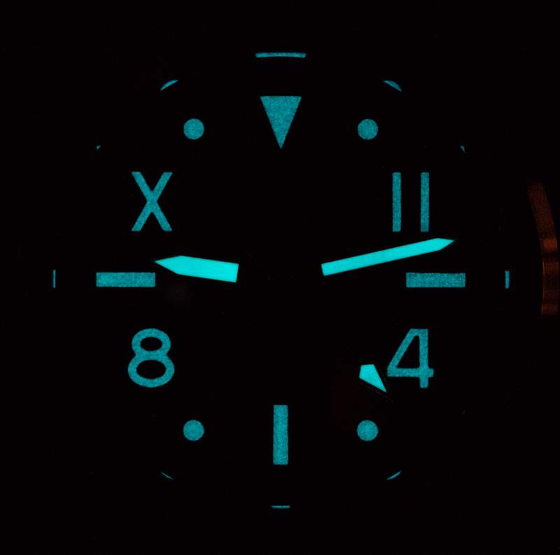 加利福尼亞,作為一個(gè)名字,之所以吸引我,是因?yàn)槲襾?lái)自加利福尼亞,但也因?yàn)槲乙恢睂?duì)加利福尼亞表盤(pán)的時(shí)計(jì)著迷。我相信這些都是從勞力士模型開(kāi)始的,還有一些沛納海手表也有加州表盤(pán)。我在加州表盤(pán)上的歷史是模糊的,但我相信這個(gè)名字源于很久以前,加利福尼亞的一位手表經(jīng)銷(xiāo)商從勞力士訂購(gòu)了這種風(fēng)格的表盤(pán),并且“加州表盤(pán)”的名字被卡住了。什么是加州表盤(pán)?一般來(lái)說(shuō),它是一種設(shè)計(jì),其中一半的時(shí)標(biāo)寫(xiě)成阿拉伯?dāng)?shù)字,另一半寫(xiě)成羅馬數(shù)字。我不相信這種安排有任何功能上的原因,但它看起來(lái)確實(shí)很有趣。MAT 對(duì)加利福尼亞表盤(pán)的設(shè)計(jì)與您在經(jīng)典勞力士或一些當(dāng)代沛納海手表表盤(pán)上看到的不同,并且似乎將 Submariner 風(fēng)格的表盤(pán)與加利福尼亞表盤(pán)美學(xué)相結(jié)合。MAT California 表盤(pán)上,10 點(diǎn)鐘和 2 點(diǎn)鐘的時(shí)標(biāo)是羅馬數(shù)字,8 點(diǎn)鐘和 4 點(diǎn)鐘的時(shí)標(biāo)是阿拉伯?dāng)?shù)字。其他小時(shí)標(biāo)記是形狀。