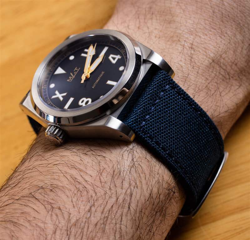 表殼內(nèi)是瑞士 ETA 2824-2 自動(dòng)機(jī)芯,以 4Hz 運(yùn)行,動(dòng)力儲(chǔ)存約兩天。對(duì)于這種風(fēng)格和價(jià)位的手表來(lái)說(shuō),這是一款合適的機(jī)芯。我喜歡表盤(pán)缺少日期窗口的方式,因?yàn)檫@有助于保持美觀和表盤(pán)對(duì)稱(chēng)。MAT 的肩帶很慷慨,而且還碰巧提供了一些我最喜歡的第三方肩帶。California XL 手表提供三種表帶選項(xiàng),但實(shí)際上我一直將它佩戴在同樣來(lái)自 MAT 的藍(lán)色紋理表帶上。在風(fēng)格方面,我喜歡 42.5 毫米寬的表殼和 24 毫米寬的表帶的組合,因?yàn)樗兄谶M(jìn)一步體現(xiàn) California XL 手表所追求的大膽“XL”主題。MAT California XL 手表的包裝中包含一條棕褐色皮革表帶、一條黑色橡膠表帶和折疊展開(kāi)式表扣,以及帶有魔術(shù)貼連接系統(tǒng)的古怪黑色紋理表帶。后一種表帶是手表的有趣但小眾選擇,在隨附的表帶中,棕褐色皮革表帶很容易成為我的最?lèi)?ài)。