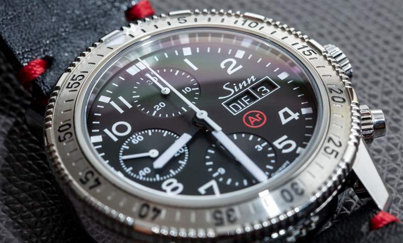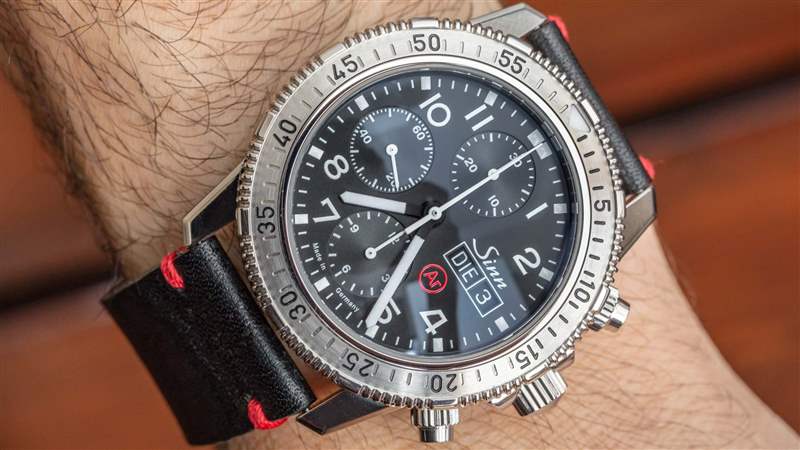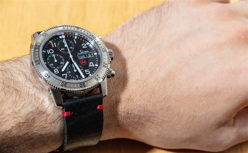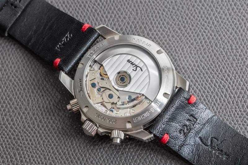 在 43 毫米寬的表殼內,透過藍寶石水晶表背窗可以看到瑞士制造的 ETA Valjoux 7750 自動計時機芯(4 赫茲,動力儲存約兩天)。它具有時間、12 小時計時碼表和日期/日期窗口。日期盤可以用德語或英語訂購。Sinn 不只是投入股票 7750 并收工。他們似乎使用的是高度裝飾的頂級 7750,我們知道 Sinn 親自調節機芯以在內部達到最佳性能。我也很喜歡盡管有顯示底蓋,但根據 DIN 8309 標準,手表仍然是防磁的。事實上,如果您訪問 Sinn 網站,您將了解 206 符合的許多 DIN 標準。