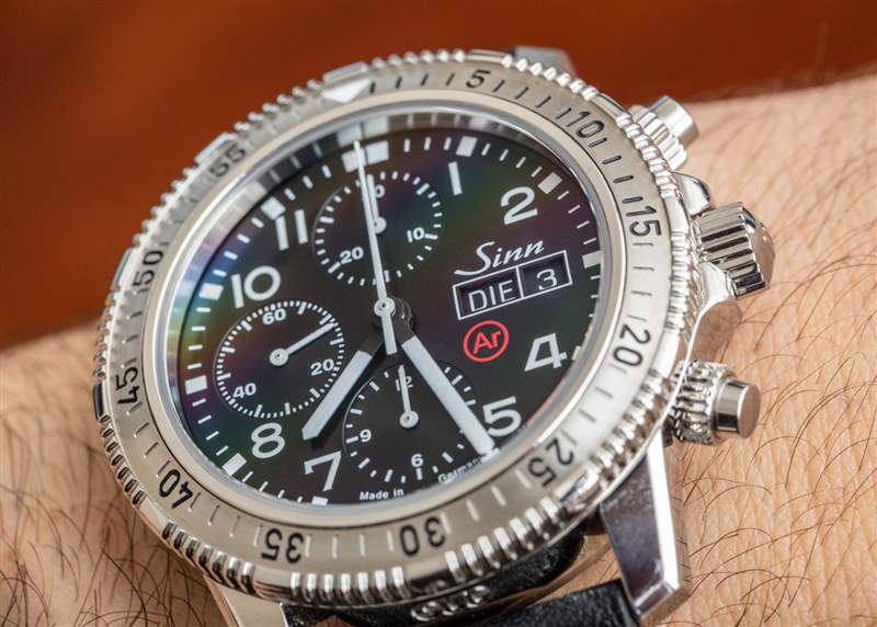 說到水……使這款工具表在競爭中脫穎而出的關鍵特征之一是名稱中的“Ar”部分,現在這往往意味著一套旨在防止水進入機芯和表盤區域的技術表殼。“Ar”曾經代表氬氣,Sinn 以前用它來填充這種類型的手表。從那時起,Sinn 開始使用其他惰性氣體,“Ar”手表也專注于兩種不同類型的技術。