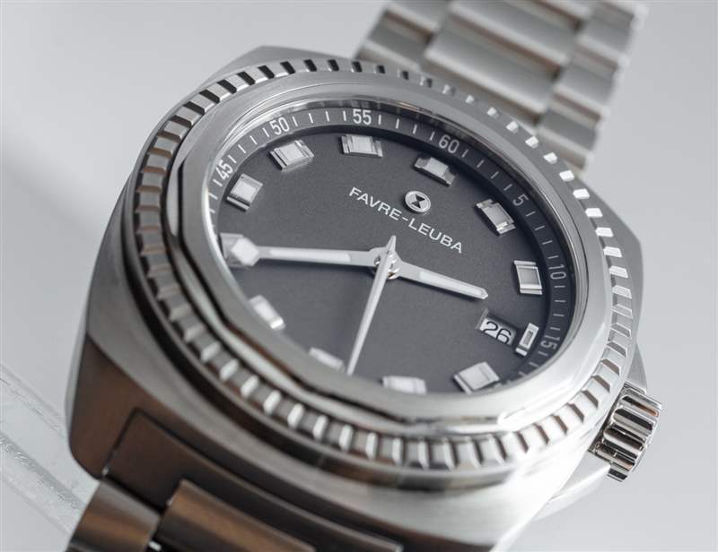 表盤上更顯Favre-Leuba品牌個性,與其他Raider家族時計相比較為簡潔。指針特別告訴您,這不是隨便的普通時計,拋光和應用的方形時標很容易看到,讓人想起 1970 年代的運動手表設計。指針和時標涂有 Super-LumiNova 夜光涂料,用于查看時間和日期。3 點鐘位置的窗口顯示日期,但不會移除整個 3 點鐘小時標記。表盤外圍是一個帶有分鐘軌道的凸起和傾斜法蘭環。這既是一個吸引人的元素,又有助于為表盤增添一種受歡迎的深度感。它還有助于從表圈到表盤的下降感覺不那么劇烈或突然。廣告訊息廣告信息結束