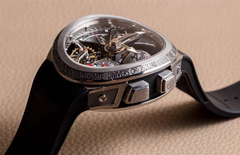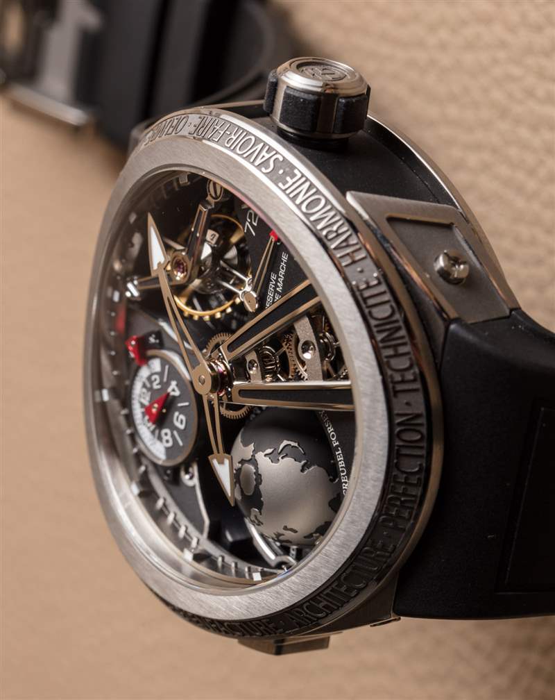 在手腕上,Greubel Forsey GMT Sport 非常舒適——這對(duì)于經(jīng)常制造舒適手表的品牌來說并不令人意外(盡管他們的許多手表都具有高度原創(chuàng)的表殼形狀)。在定制的橡膠表帶上(其設(shè)計(jì)看起來好像與表殼融為一體),與其他高珀富斯手表不同,GMT Sport 具有手腕存在感。雖然它在手腕上很高,但我確實(shí)認(rèn)為,對(duì)于合適的人來說,這款手表可以成為日常佩戴。