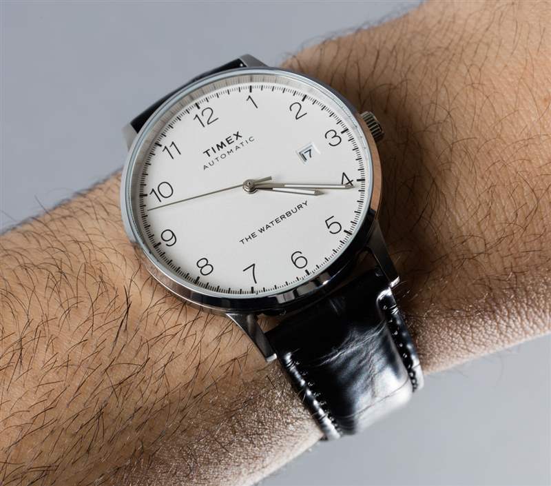 沃特伯里是 Timex 所在的康涅狄格州最初城市的名稱。此后,它把總部搬到了幾英里外,但品牌中的“沃特伯里”精神根深蒂固,這個品牌似乎適用于其更具“昨日風(fēng)采”的產(chǎn)品。沃特伯里經(jīng)典自動腕表看似簡單,但表盤的比例和易讀性非常好。它讀起來就像一個非常舒適的掛鐘——這是一件好事。阿拉伯小時數(shù)字環(huán)很吸引人,搭配大小合適的時針、分針和秒針。3點鐘附近的日期窗口稍微設(shè)置了一點,不需要移除3點鐘的小時標(biāo)記。階梯式日期窗口是一種微妙而精致的觸感,提升了時計的整體外觀。廣告訊息廣告信息結(jié)束