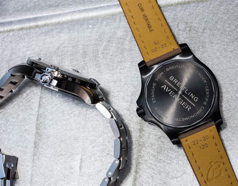 2019 年,百年靈將 Colt 系列退役,并將其與 Avenger 合并。手表總是看起來太相似了,新的復仇者系列實際上有一個全新的結構,但仍然具有現代百年靈的標志性外觀和感覺。表殼寬 45 毫米,而且由于表耳寬大,它們的重量確實很重。考慮到寬度,它們的厚度僅為 12.3 毫米,感覺很薄,表殼防水深度達 30 米,表盤上方有 AR 涂層藍寶石水晶鏡面。