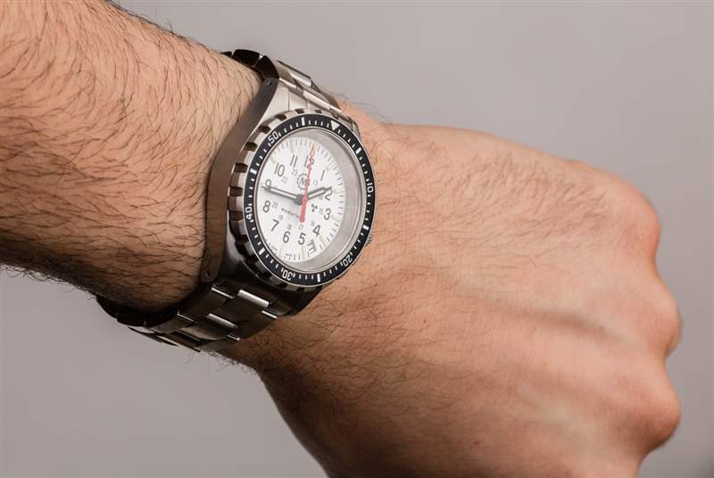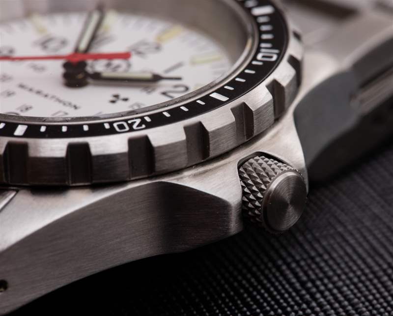 為了確保可讀性通常保持較高(與所有 Marathon 手表一樣),對手表進(jìn)行的另一個(gè)小改動(dòng)是指針的顏色,現(xiàn)在指針的顏色是黑色而不是白色。幾代人以來,如果您想要一款 Marathon 軍用/運(yùn)動(dòng)/潛水表,唯一的顏色就是黑色——這正是軍方想要和認(rèn)可的。如果您的客戶有嚴(yán)格的需求并且只想要黑色表盤,那么這就是您要做的。今天,Marathon 肯定會(huì)繼續(xù)為其軍事客戶制造手表,但其面向消費(fèi)者的關(guān)注點(diǎn)正在成熟和發(fā)展良好。這意味著我們已經(jīng)知道和喜愛了很長一段時(shí)間的工具手表系列的更多“時(shí)尚”擴(kuò)展。話雖如此,回想一下,盡管 Marathon 制造軍用手表已有 80 年歷史,