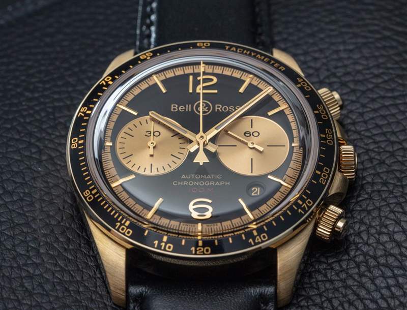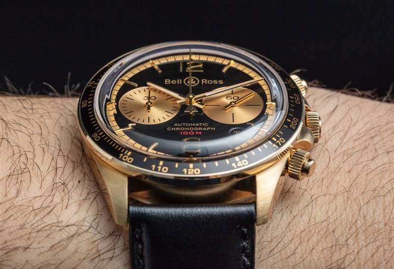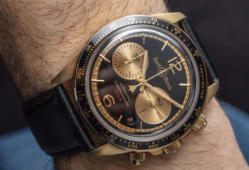 設計精美的Bellytanker Bronze 表盤帶有黑色和金色,帶有一絲紅色。金色的小表盤觸感很好,讓我想起某些永恒玫瑰金勞力士迪通拿手表型號的調色板。正如我上面所說,Bell & Ross 沒有選擇氧化青銅,而是選擇了一種穩定的青銅合金。這是一個重要的區別,因為幫助普及青銅作為現代手表材料的青銅合金,事實上,隨著時間的推移,“銅綠”。這款帶有青銅表殼(以及其他一些手表)的 Bell & Ross 選擇了一種不會氧化并隨后產生銅綠的金屬合金。當然,手表會刮花,但隨著時間的推移,它不會開始變綠或變黑。我更喜歡穩定的青銅,通常情況下,鑒于 BR V2-94 Bellytanker Bronze 的外觀更別致(而不是古董),