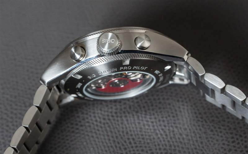 鋼殼 ProPilot Chronograph GMT 寬 44 毫米,厚近 16 毫米,是一款重量與其尺寸相匹配的重型時計。表耳到表耳的距離約為 53 毫米,因此手表可以佩戴在大多數手腕上。Oris 最初生產的手表有幾個表帶選項,但作為手鏈愛好者,我更喜歡 Oris 自己風格的折疊展開式表扣上匹配的三鏈式鋼金屬表鏈。