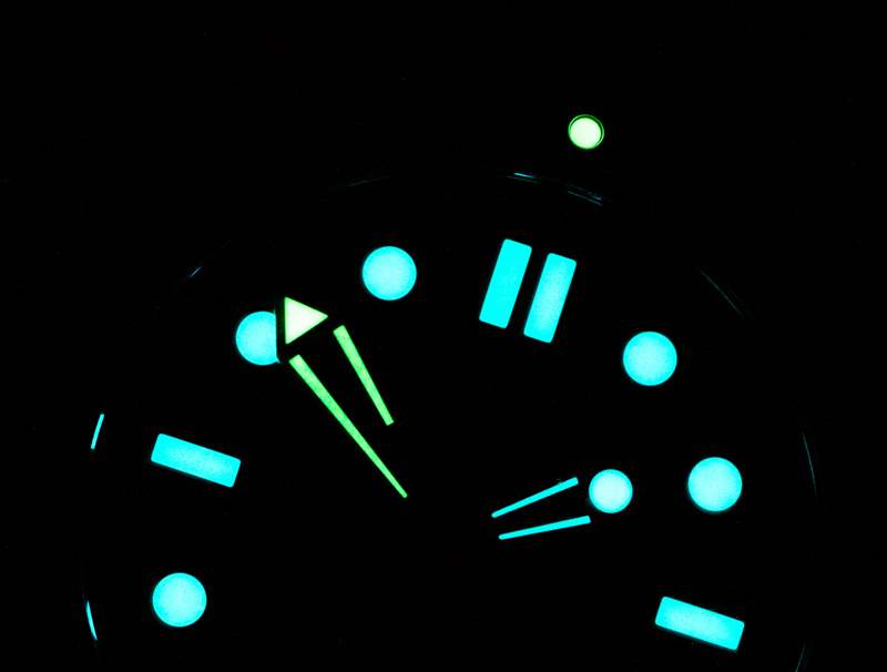 讓我們稍微談?wù)劚肀P。易讀性真的很棒,因為指針和時標(biāo)盡可能大,而且離表盤也很高(相對而言)。應(yīng)用的小時制造商和指針也有一個真正吸收光線并幫助它們與黑色陶瓷表盤形成良好對比的拋光劑。具有諷刺意味的結(jié)果是,因為這個表盤吸收光線并反射它,它最終變得更加清晰。通常情況正好相反,因為光線會導(dǎo)致模糊和眩光,從而使表盤變得不那么明顯。