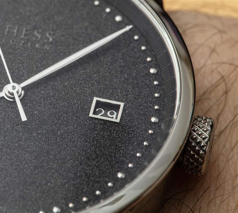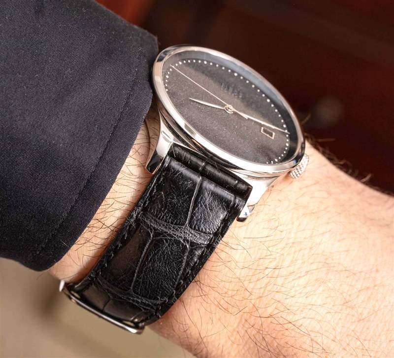 在審查高端正裝手表(考慮到價格時,Hess Luzern TWO.2 Diamond Dust 就是這樣),我喜歡特別關注手腕的存在和表殼的處理。好的正裝手表應該喚起優雅,有時纖細的比例是其中的一部分。TWO.2 手表默認配備拋光鋼表殼,但該品牌表示,根據特殊訂單,它也可以提供貴金屬表殼選項。整體外殼設計(除了有點太厚)很好,但我質疑拋光的選擇。整個表殼經過拋光處理,實際上增加了它的視覺質量。通過使用拉絲表帶或對飾面進行一些更改,設計師可以幫助在視覺上減小外殼或外殼的尺寸。TWO.2 表殼相對簡單的結構,以及大部分均勻的表面處理,并不像 Hess 所追求的高端感覺那樣出色。一種不同類型的案例整理可以真正改變這一點。