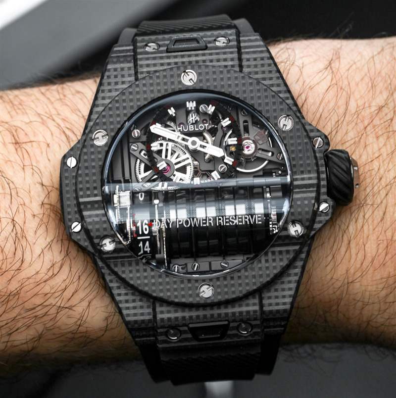 在我看來, Hublot?2018年技術上最有趣的新款手表是新款 Hublot MP-11 Power Reserve 14 Days 時計,它有兩個版本(藍寶石水晶或 3D 碳纖維)。話雖如此,瑞士品牌發布的最復雜的手表實際上是 MP-09 的新版本(Masterpiece Collection #9),但 MP-11 具有新的外觀和機芯,這是宇舶表正在進行的修改的一部分。最初為Hublot MP-05 La Ferrari設計的超長動力儲存機芯技術,總共擁有50天的動力儲存。