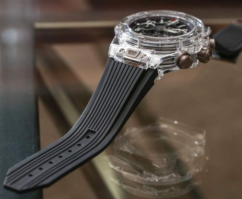 Hublot Big Bang UNICO Magic Sapphire reference 411.JX.1170.RX是為數不多的藍寶石水晶表殼腕表之一Hublot生產——迄今為止,它是我的最愛。幾年前,我所知道的第一款藍寶石水晶表殼手表是由超高端制表師 Richard Mille 發布的,售價超過 1,000,000 美元。我記得第一次在展示柜中看到它——無法觸摸但看起來很有趣。不,這種材料看起來肯定不像塑料。現在幾年后,手表的藍寶石水晶表殼的價格似乎降到了五位數的中間。不,這不是完全便宜的價格,但它確實向您表明需求(即使在手表行業的奢侈品游戲中)會降低價格。同樣的事情也發生在陶瓷手表上——陶瓷和藍寶石水晶都因其耐刮擦而著稱。