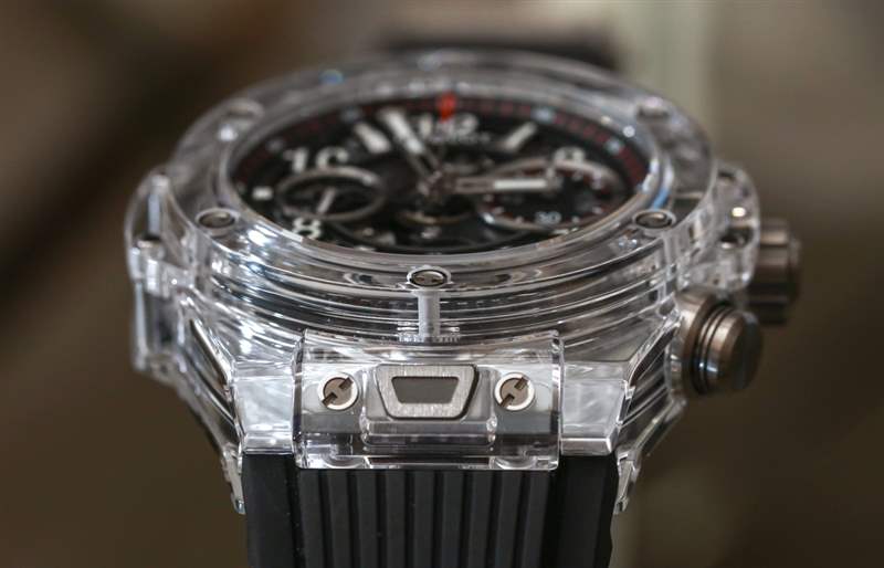 正如我上面提到的,藍寶石水晶作為表殼材料的吸引力與耐刮擦性有關,但不僅僅與耐刮擦性有關。雖然我認為這種品質很重要,因為如果這種情況是塑料的,就會發生刮擦。人們似乎擔心,如果佩戴昂貴的藍寶石水晶表,旁觀者會誤認為是廉價塑料。也許在佩戴的最初幾天,但一周后,塑料表看起來很糟糕,而藍寶石水晶表看起來和剛拿到時一樣。并不是說藍寶石永遠不會刮傷——但這很難做到。宇舶表的螺絲、按鈕和其他一些部件(例如表帶上的展開器)使用鈦金屬。