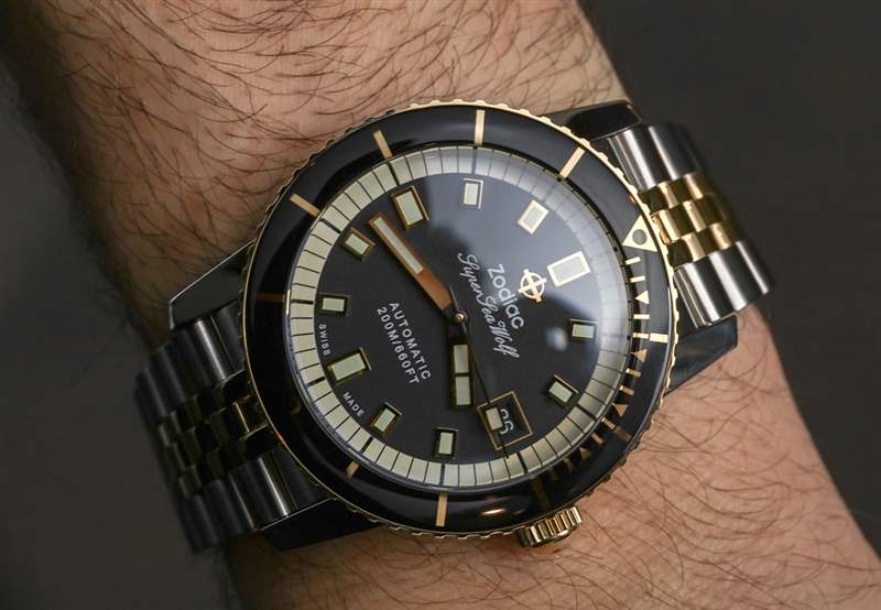 Zodiac 的產品開發團隊玩得非常開心,體驗了 Super Sea Wolf Compression 的各種顏色,其中許多結果更加奇特和有趣,而不是莊重和保守。一個很好的例子是我在 aBlogtoWatch 上介紹的 2018?Zodiac ZO9269“西瓜糖”版超級海狼壓縮的新產品。這款黑色表盤的雙色調版本稍微正式一點,如果不成熟的話,這款外觀非常經典的潛水表 – 我認為它非常適合那些發現自己經常穿著長袖和/或西裝的人.