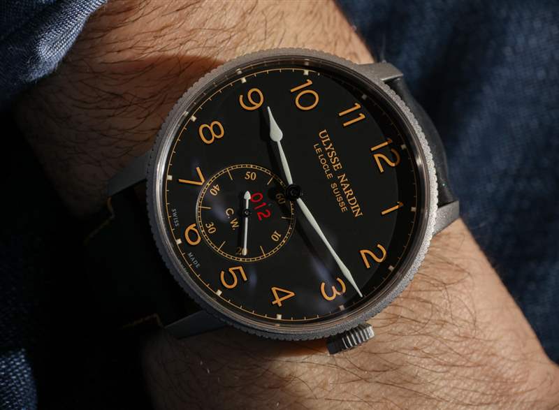 Ulysse Nardin 將每款腕表的限量版編號以紅色印在表盤上——這再次讓人聯想到軍用裝備的序列號。鑒于表盤上的數字是獨一無二的,每個人的手表版本看起來都會略有不同,這有點好。附在表殼上的是黑色或棕色皮革表帶,完美地完成了主題。在我看來,參考 1183-320LE/62(黑色)或 1183-320LE/60(蛋殼)都不是更好的模型,因為它們都具有設計優點和獨特的個性。我有點認為一個是白天模型,一個是夜間模型。