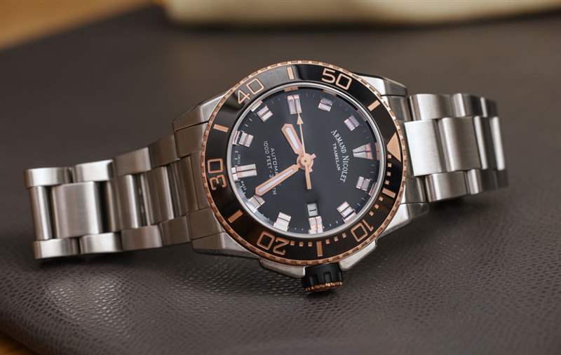 2018 年,瑞士手表品牌Armand Nicolet發(fā)布了 JS9 系列的全新潛水表系列。幾乎每個手表品牌都在嘗試在價值和風(fēng)格主張方面做出更好的潛水表。為什么?具有個性的運動型/功能型/表現(xiàn)力工具表是目前奢侈鐘表消費者最需要的。那么讓我們看看 JS9 的表現(xiàn)如何。今天要評測的是 Armand Nicolet JS9 參考 A480ASN-NS-MA4480AA(一口),它是 JS9,帶有匹配的鋼表鏈,黑色和玫瑰金色調(diào)。這是 2018 年的新系列,在十幾個可用的變體中,我碰巧最喜歡這個模型的外觀和易讀性。